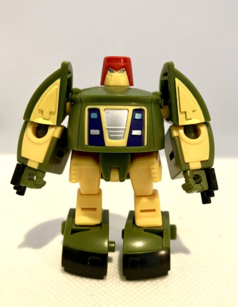일단 로보트의 명칭이 재미있습니다. “방아쇠 해피”. 즉 총쏘는걸 즐기는 행위를 말합니다. 극중에선 비록 악역이지만 성격이 유쾌하여 아끼던 녀석이에요. 당시 전 서울 용산구 동부이촌동에 살고 있었는데, 동네 또래 아이들 사이에서 이걸 비행기 모드로 변신한뒤, 가슴팍에 있는 디셉티콘즈의 로고 스티커를 문지르면, 체온에 의해 색깔이 계속 변한다?는 유언비어때문에 틈만나면 스티커를 문지르던 그 시절이 생각나네요.